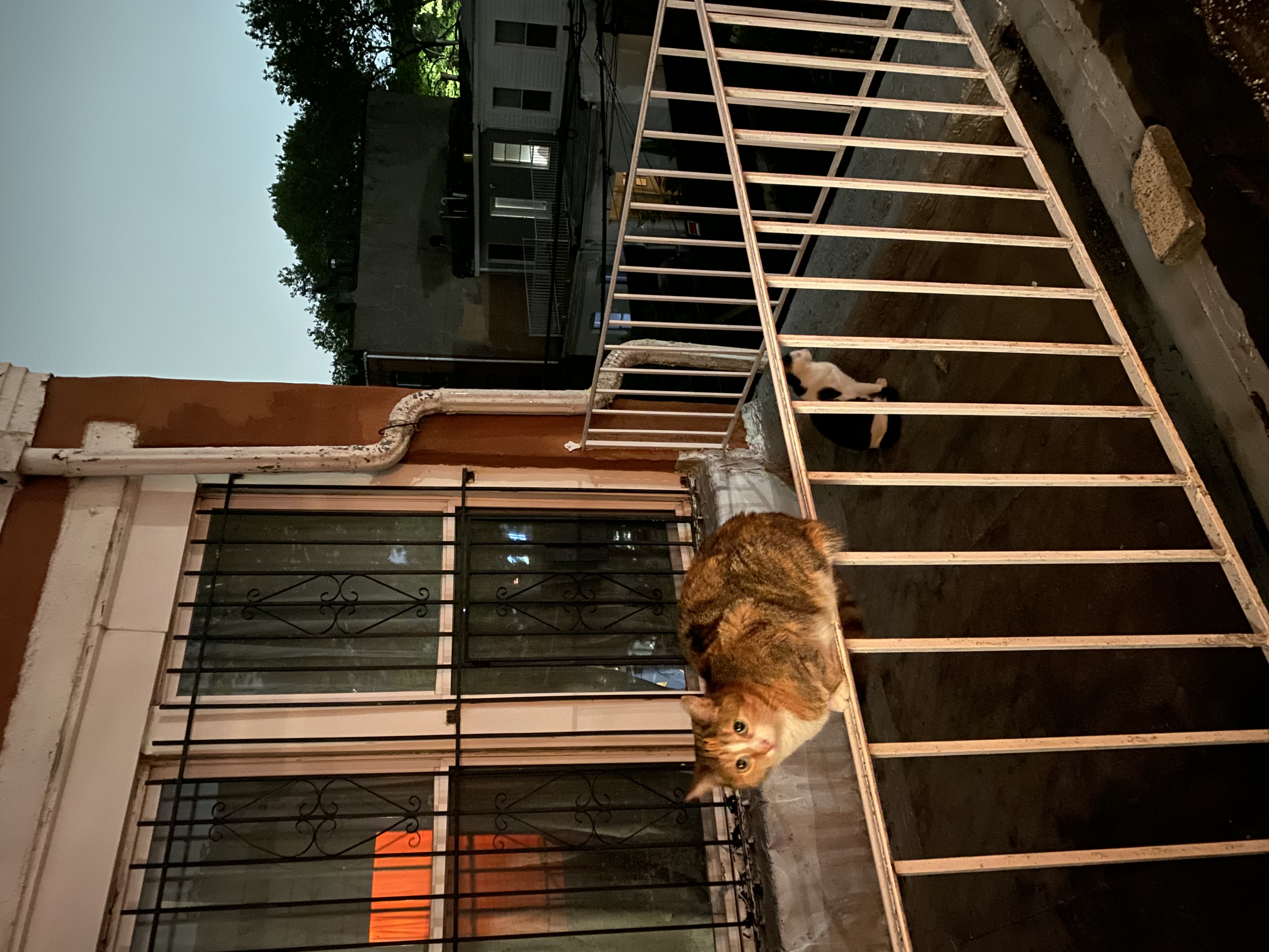 Morning coffee on the patio w/ the cats and our kiddie pool