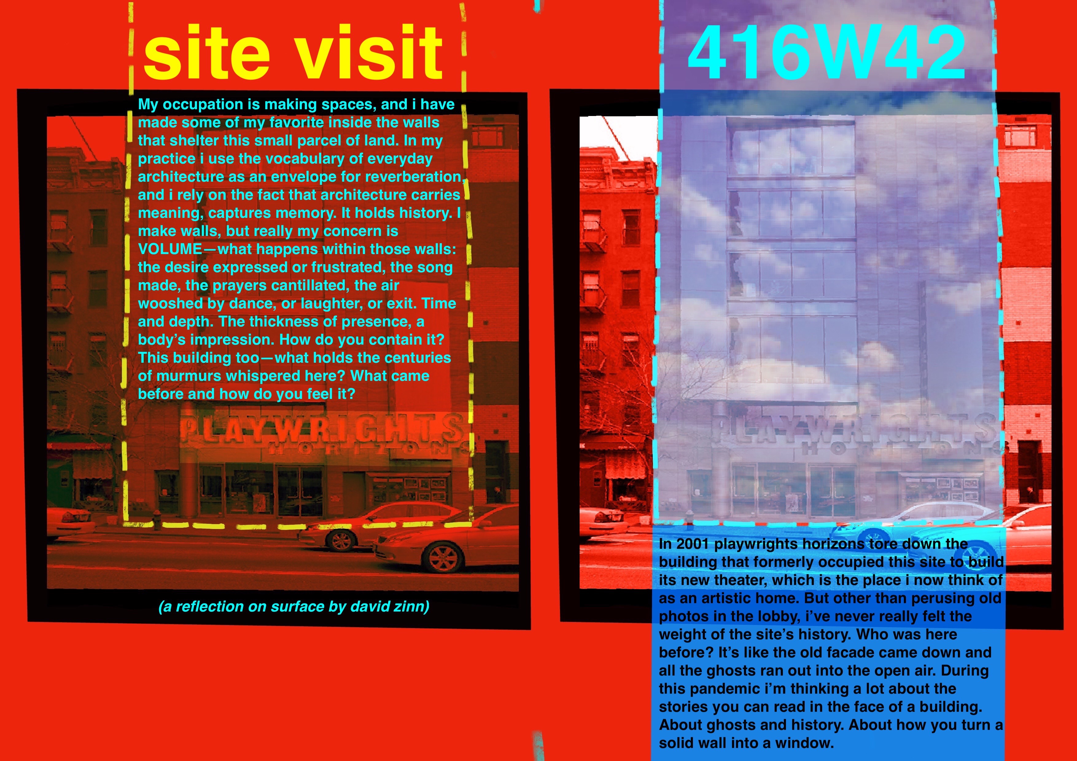 PhotosAlmanac"site visit: 416W42" by David ZinnAugust 04, 2020Related: "Eleven Thoughts (In Order)" by Adam Greenfield Essay "Looking Back" by Ashley Chang Essay "Abundance" by Lizzie Stern Essay