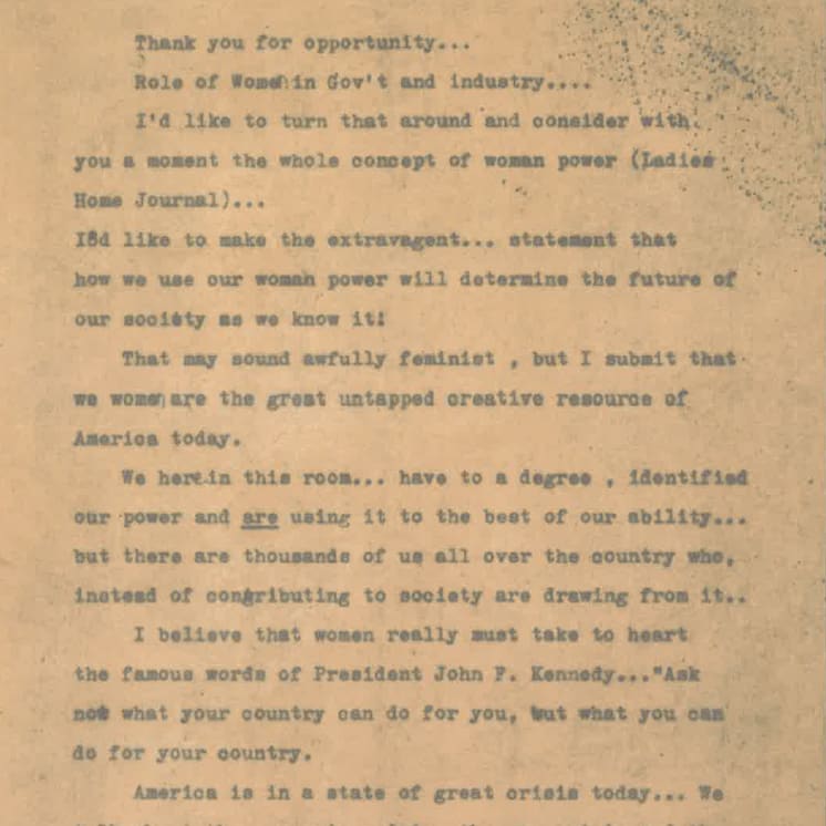 I’d like to make the extravagant… statement that how we use our woman power will determine the future of our society as we know it.