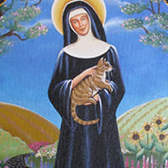 Patron Saint of Cats A seventh-century Frankish noblewoman became the original cat lady when, after angrily rejecting a politically advantageous marriage to become abbess of a Belgian monastery, she was forced to combat a pernicious rodent invasion with an army of cats. |