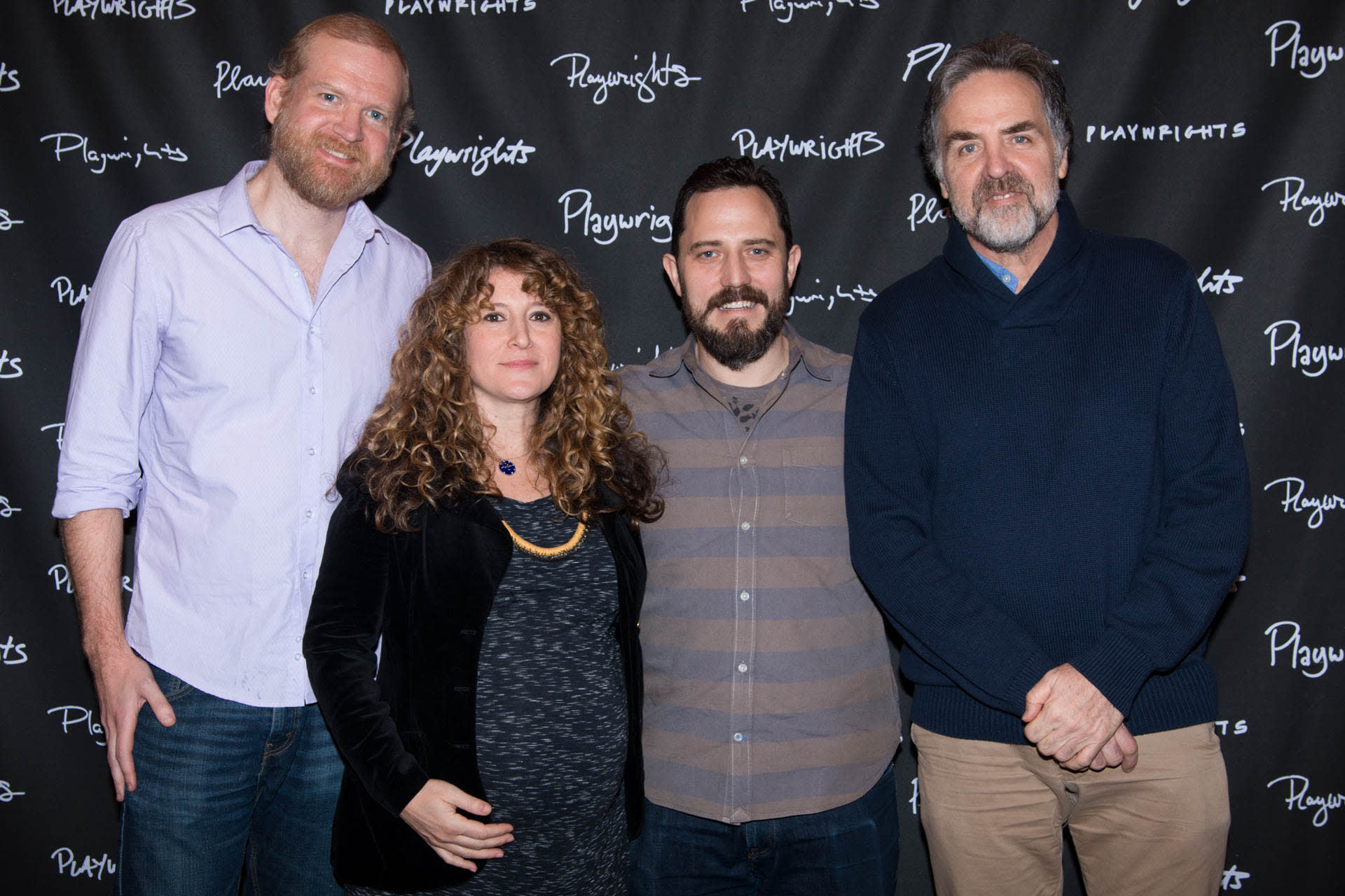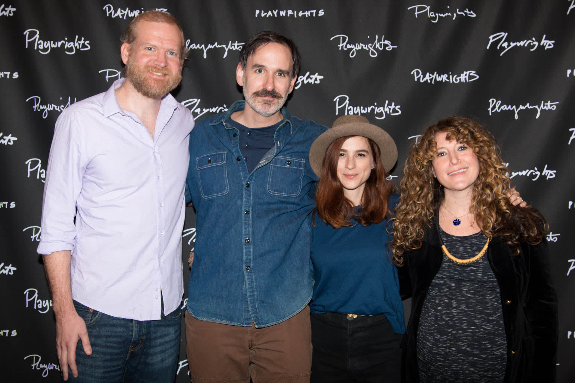 Playwright Paul Thureen, cast members Erik Lochtefeld and Aya Cash, and playwright Hannah Bos