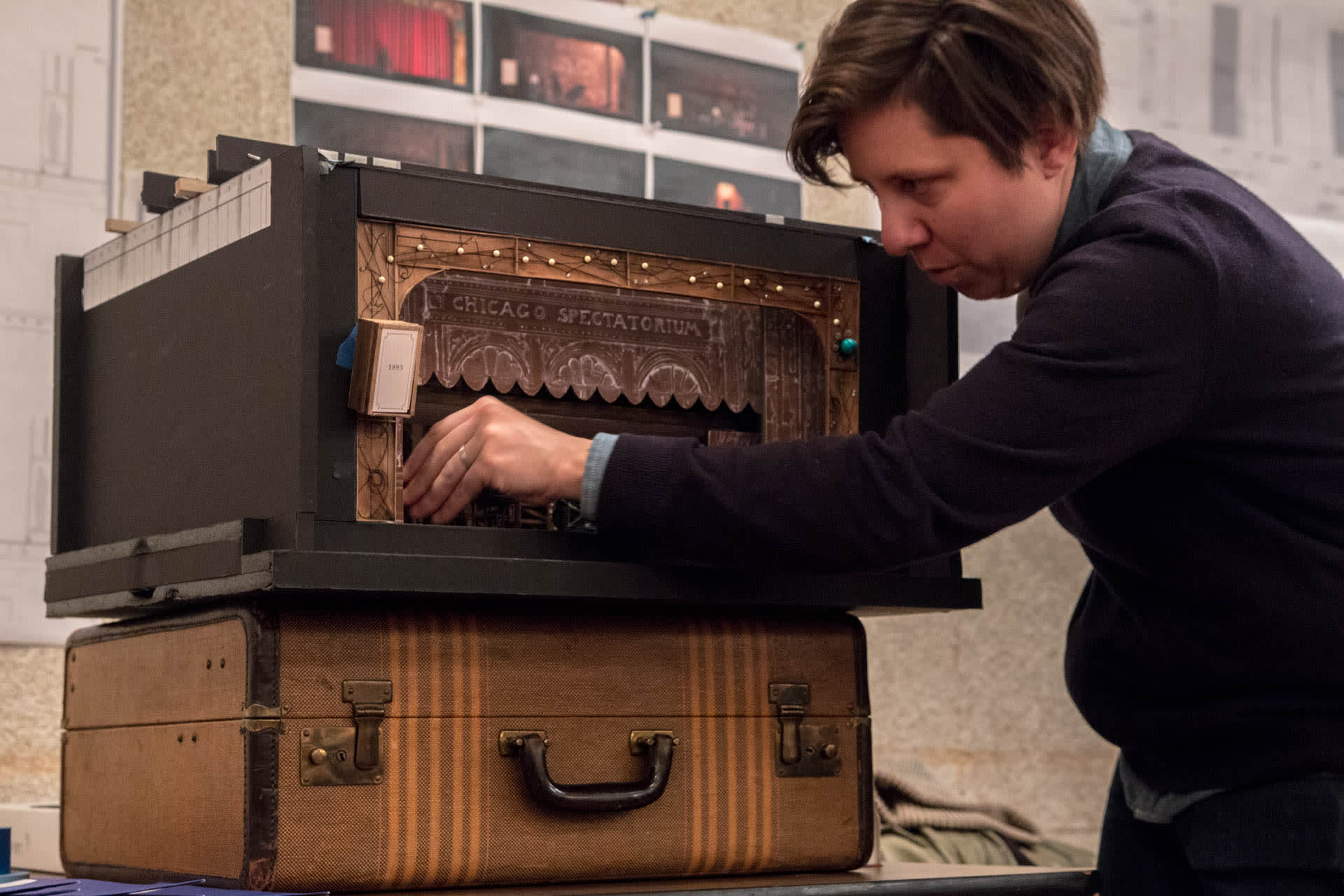 Scenic Designer Laura Jellinek presenting her exquisite set design model.