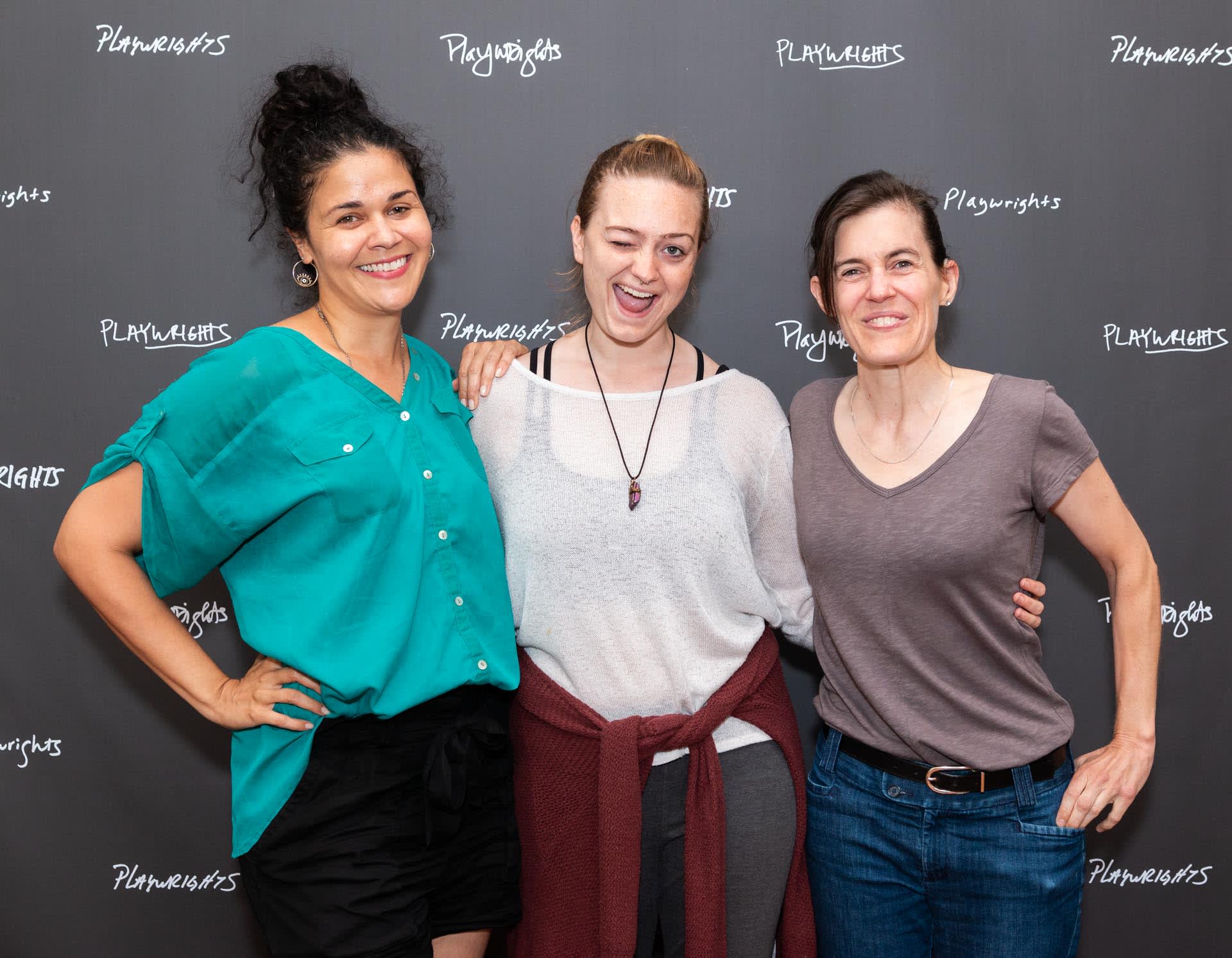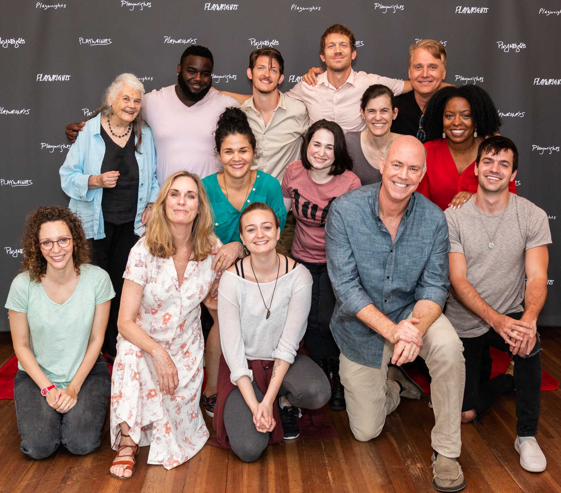 The staff of Playwrights assembles before the read-through with the company of I Was Most Alive with You.