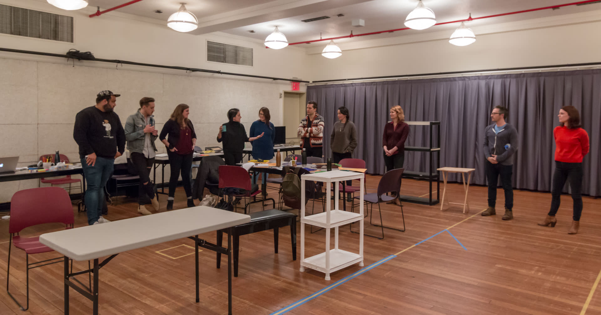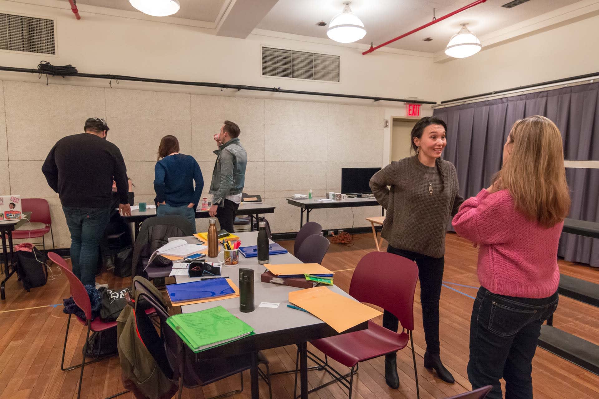 Director Lila Neugebauer speaking to the company.