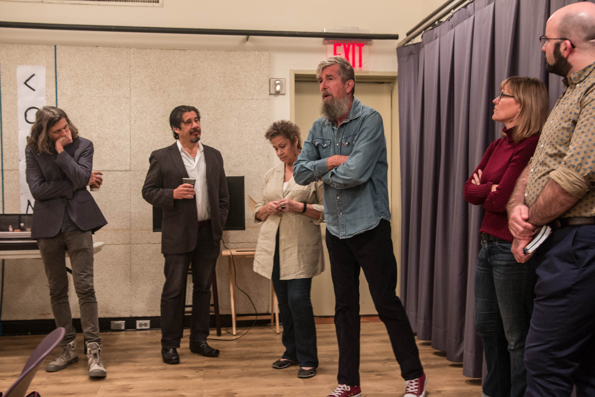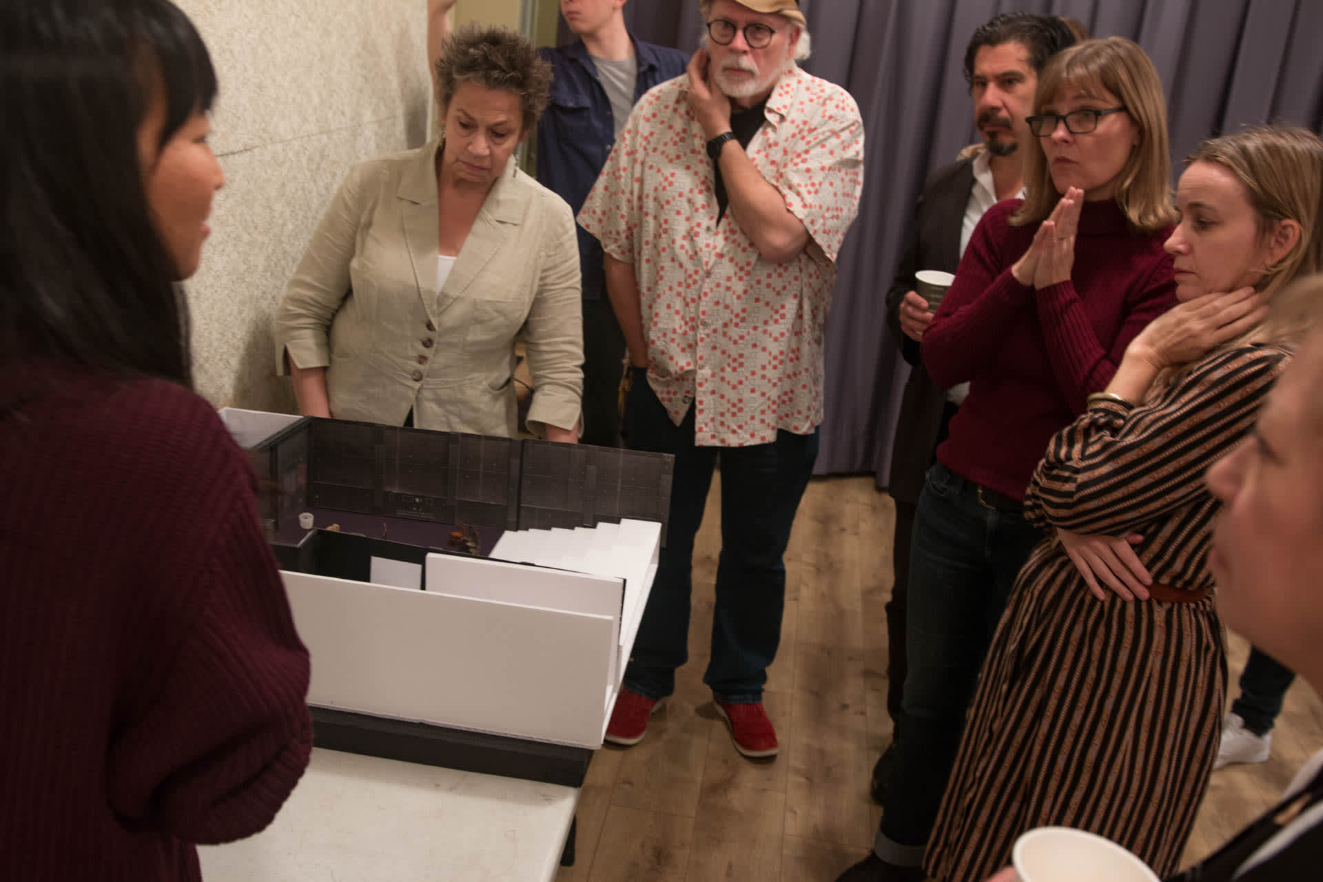 Director Les Waters, Playwright Lucas Hnath, cast members Randy Danson, Emily Cass McDonnell, Kelly McAndrew, and Triney Sandoval
