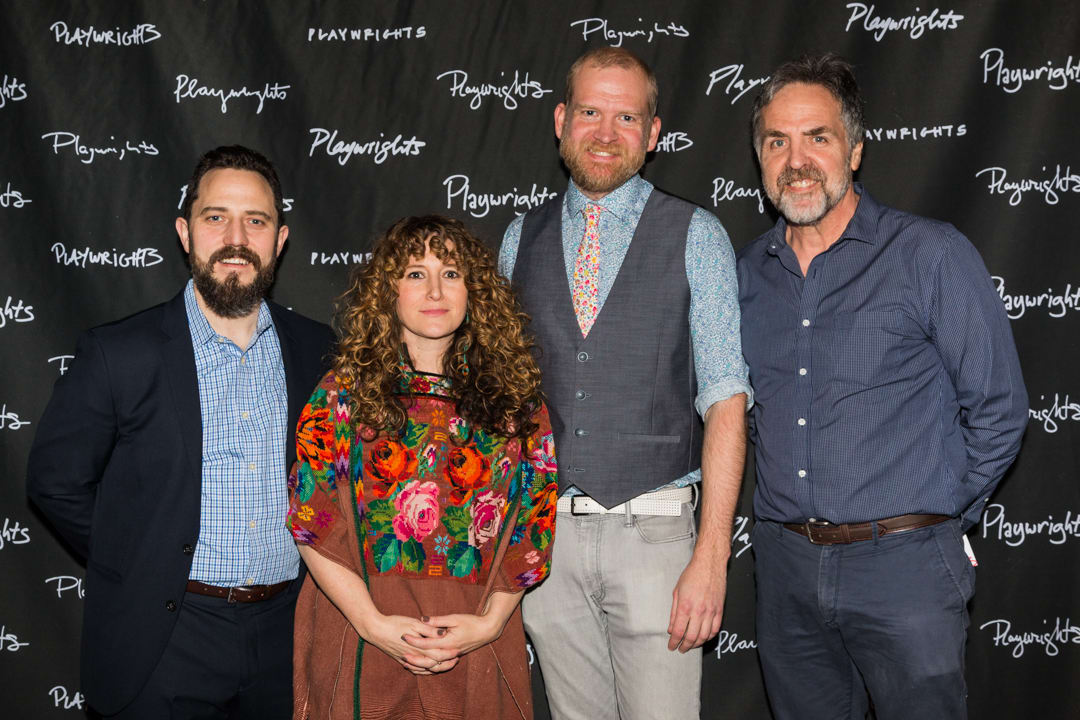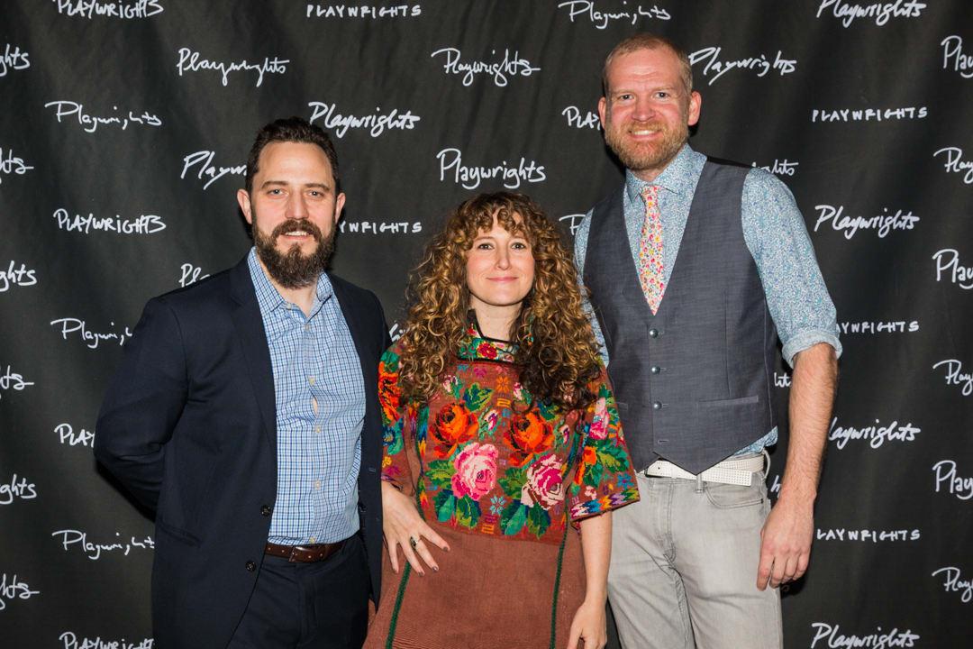 The Debate Society (Oliver Butler, Hannah Bos, Paul Thureen) with Playwrights Artistic Director Tim Sanford