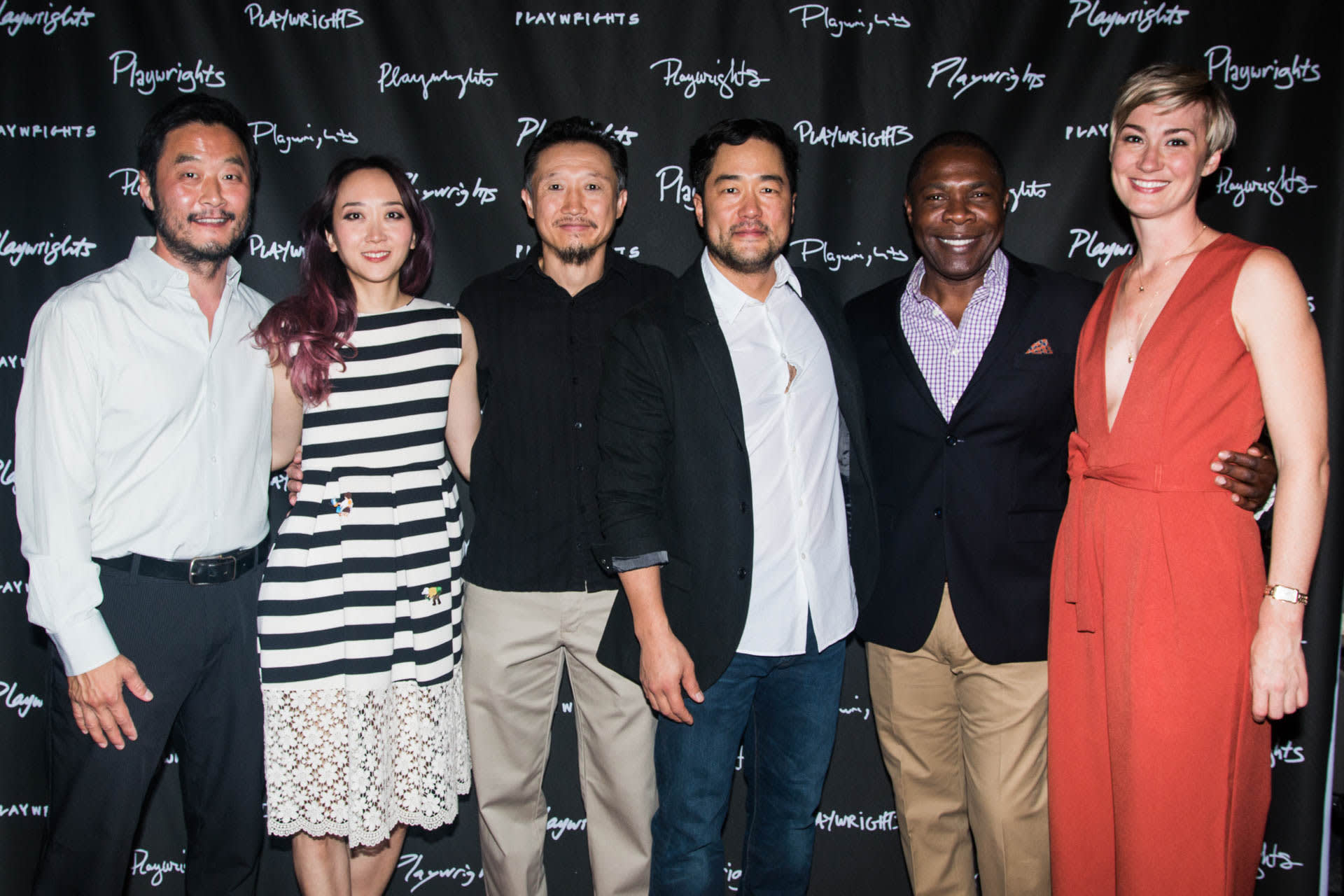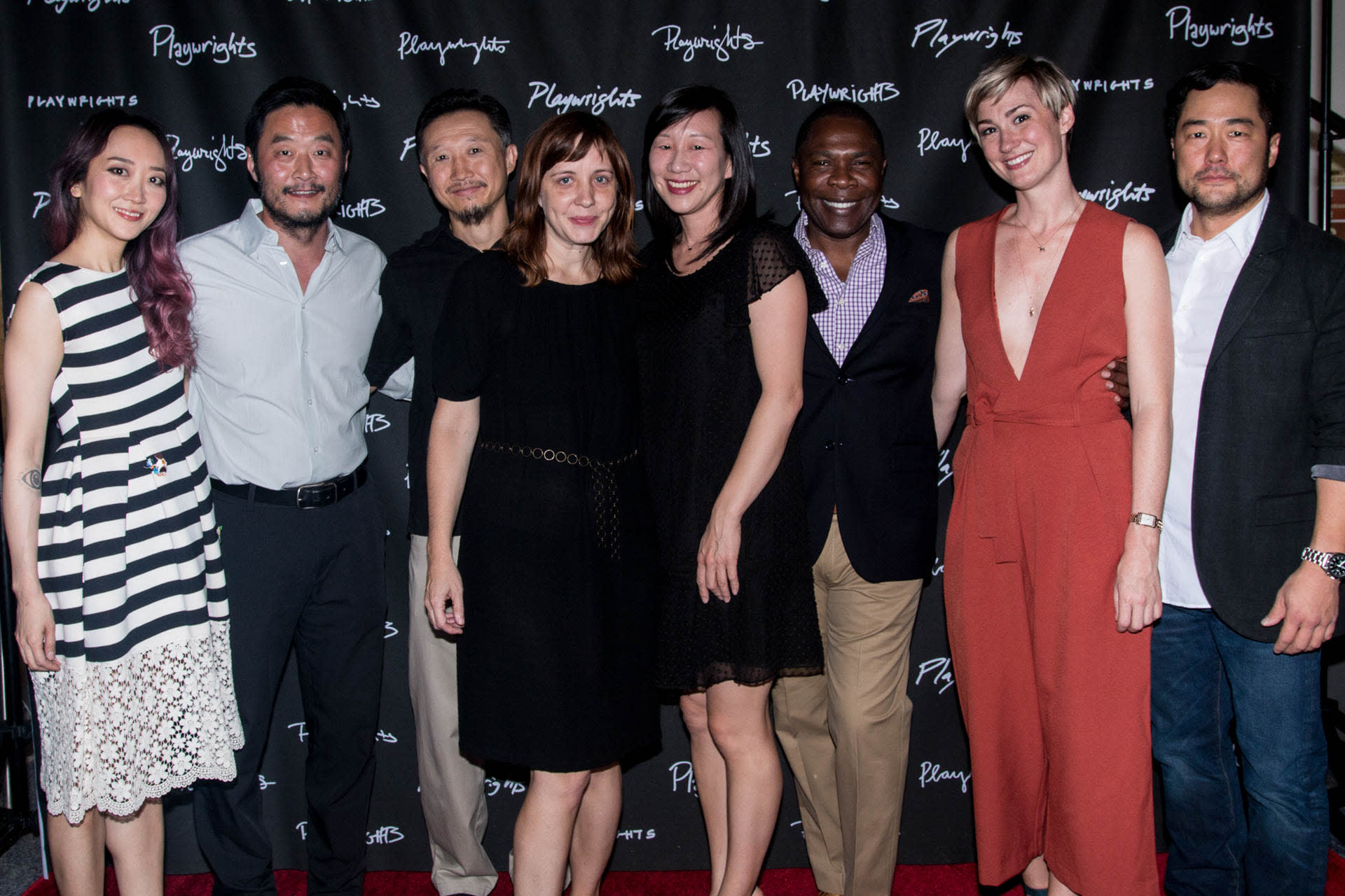 Cast members Sue Jean Kim, Stephen Park, and Joseph Steven Yang, director Kate Whoriskey, playwright Julia Cho, and cast members Michael Potts, Jessica Love, and Tim Kang